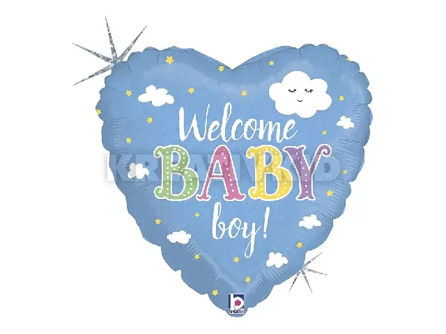 45cm Welcome Baby Boy feliratos, hologrammos fólia lufi