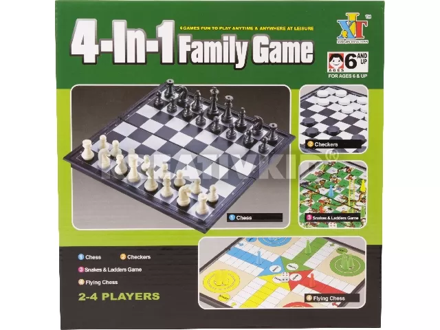 4IN1 társasjáték (sakk, dáma, ki nevet a végén, létrák és kígyók)