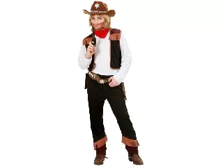 Indiánlány jelmez, 140-es méretben a Widmann termékkínálatából. Rojtos, díszes indiánlány jelmez világos- és sötétbarna színben. A puha anyagból ...