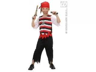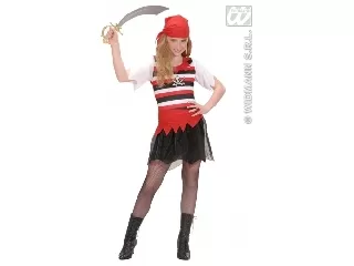Kalózlány jelmez 128-as méretben a Widmann jelmezkínálatából. A rendkívül mutatós, hosszanti csíkozású, cikkcakkos szoknyáhot egy fehér ing tartozik f...