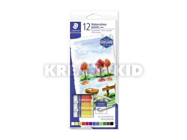 Akvarell festék, tubusos, STAEDTLER "8880", 12 különböző szín