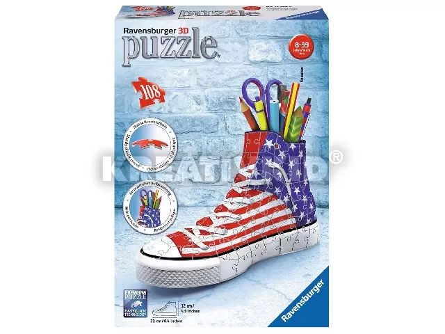Amerika tornacipő 108 darabos 3D puzzle szett a következőket tartalmazza: