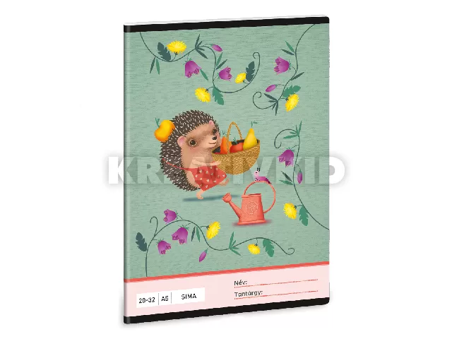 A/5-ös méretű, sima füzet. 32 lapos, belseje 75 gr-os papírból. Borítója 250 gr-os műnyomó kartonra lekerekített sarkokkal, fényes fóliázással, 4 szín nyomással készült.