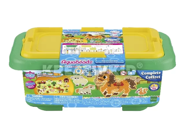 Az AquaBeads farm témájú csillaggyöngy szettje praktikus dobozban érkezik. Több, mint 3500 db gyöngyöt tartalmaz 35 különböző színben. Emellett található a dobozban permetező, stencilek, alátétek, formák és használati utasítás. Az utasításokat követve könnyedén készíthető például ló, kutya, tehén vagy malac. Az Aquabeads egy különleges, japán tervezésű kézügyesség fejlesztő és szórakoztató kreatív játék. A gyöngyök és egy kis víz segítségével csodálatos 2D-s és 3 D-s képek készíthetők: állatok, díszek, ékszerek... vagy igazából bármi. Az AquaBeads gyöngyök víz hatására összetapadnak, száradás után pedig egyben maradnak.