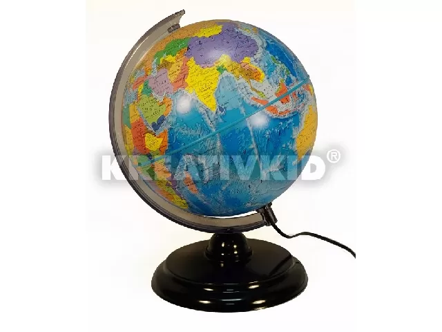 Politikai színezésű földgömb országonkénti színezéssel! Nem csupán hasznos taneszköz, de akár a lakás díszeként is szolgálhat ez a kivilágítható földgömb.