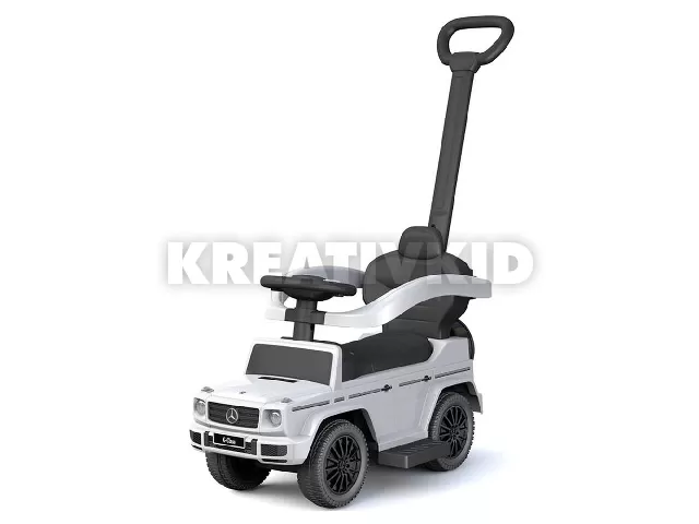 Baby Mix Mercedes Benz G63 Baby Mix kiváló minõségû mûanyagból készült. Sportos megjelenése nem csak minden gyermek, hanem a szülõk figyelmét is felkelti. Kis versenyzõje igazi Mercedesnek fogja érezni magát. A robogó segít fejleszteni gyermeke motoros készségeit, és sok szórakozást és örömet garantál számára. A menetben két gomb található a kormányon díszkürttel és dallamokkal. A robogó a legkisebb gyerekeknek készült, akik már tudnak ülni, valamint azoknak a gyerekeknek, akik már megtanultak járni. A gyerekeknek nagyon jól fog szórakozni a játékautó, mert egy igazi Mercedes utánozhatatlan külseje, kényelmes széles ülés tárolóhellyel, kormánykerék, kiváló minõségû mûanyag kerekek és kényelmes, de szilárd vezetõléc, amellyel a a játék irányítható. A vezetõléc, a karfák és a lábtámaszok eltávolíthatók, így a gyermek klasszikus kidobóként használhatja az autót. Az elemeket a csomag nem tartalmazza (2x AA 1,5 V).