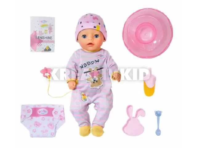 Miután az cumisüvegből vízzel etették, tud pisilni a ruhapelenkában vagy a bilin. Időnként még igazi könnyekkel is sír, ha elfárad a sok játéktól. Amikor a kislányt a hátára fekteted, azonnal lehunyja alvó szemét. A többiről a baba gondoskodik.