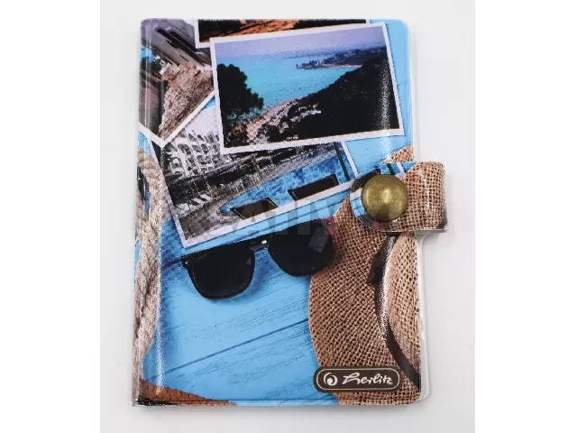 Bankkártyatartó 20 kártyához, 7x10 cm-es méretben, oldalt nyitott zsebekkel, fedlapján zsebbel, PVC fedéllel