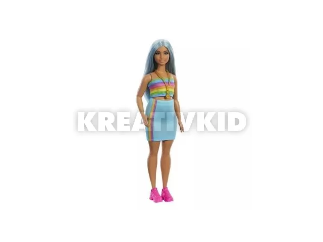 Barbie: Fashionista 65. évfordulós baba szivárvány csíkos topban. A Barbie Fashionista stílusos divatbaba szivárványmintás felsőjét és divatos kiegészítőit Barbie történetének egyik ikonikus megjelenése ihlette, ami méltó Barbie 65. évfordulójához.