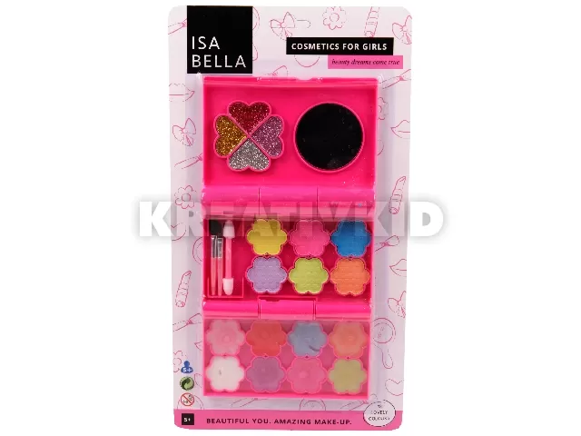 Sminkeld ki magad a színes szemfestékekkel, rúzsokkal és csillámmal! Az Isa Bella smink 18 darabos készlet dobozban egy tükörrel felszerelt dobozba zárt szépítkező készlet, amivel ki tudod színezni a szemhéjadat, ajkadat. A különféle sminkeket ecsetekkel, pamacsokkal tudod felvinni a bőrfelületre, a készlet csillámos, és élénk színű sminkeket is tartalmaz. Az Isa Bella smink 18 darabos készlet dobozban csomagolási méretei: 33 x 18 cm.