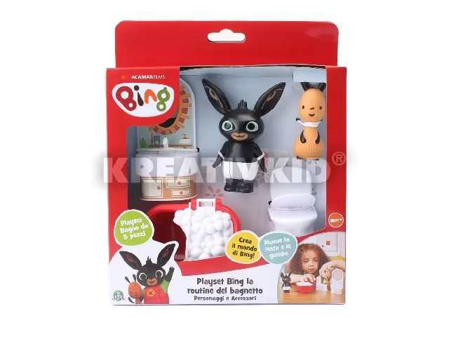 A gyermekmesék kedvenc hősei Bing és Flop figurái nagyszerű ajándékok lesznek, amelyek örömet okoznak a kicsinek! A kis barátok lefekvéshez készülnek, ezért megfürdenek és fogat mosnak a nap végén, a fürdőszobában.