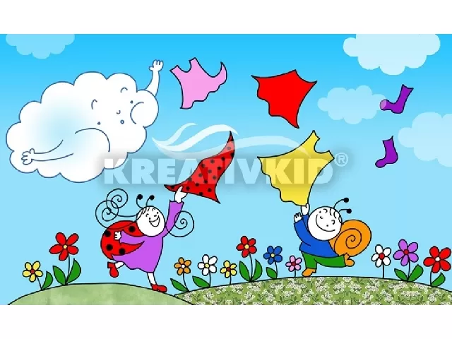 Babóca épp teregeti a ruhákat, amikor hirtelen feltámad a szél, s elfújja kedvenc pöttyös terítőjét. Jajj most mi lesz?