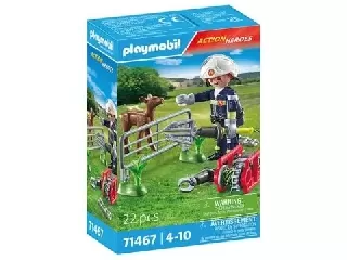 Playmobil: Tűzoltó állatmentés közben 71467. Egy tűzoltó kiszabadítja a csapdába esett őzikét. Csomagolás mérete: kb. 9 x 14 x 4,5 cm