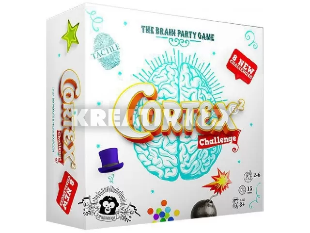 Gyorsuld le a többieket nyolcféle agymegmozgató feladványban! – Kitapintható képekkel! A Cortex 2 pörgős megfigyelési-logikai családi partijáték. A játékosok kártyáról kártyára nyolc, az agyuk különböző területeit igénybe vevő feladványtípusban mérhetik össze gyorsaságukat. Kombinálás, számolás, megosztott figyelem... és különleges, kitapintható kártyák! Kombinálható a többi Cortex társasjátékkal.