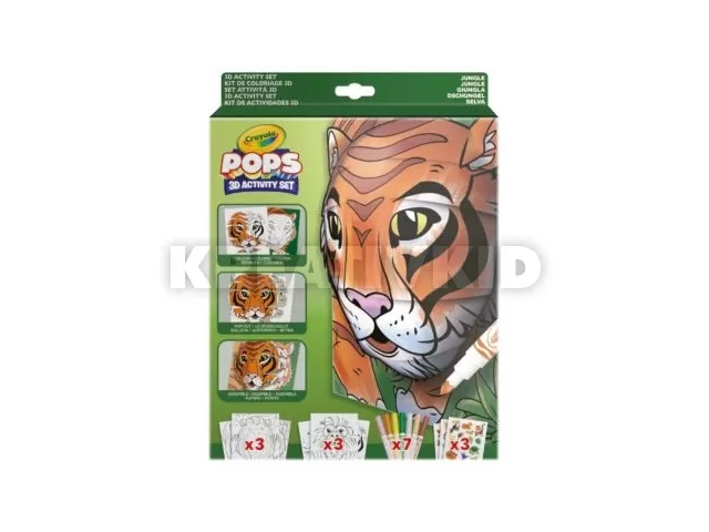 A Crayola POPs dzsungel tematikájú 3D foglalkoztató csomagjával a gyerekek háromdimenziós hatású képeket készíthetnek. A csomagban 3 háttér, 3 db 3D-s lap, 7 db filctoll és 3 ív matrica kapott helyet. A lurkóknak nincs más dolguk, mint kiszínezni a hátterek egyikét és a hozzá tartozó 3D hatású lapot, majd ez utóbbit a „kipattintani", és az utasításoknak megfelelően odailleszteni a helyére.