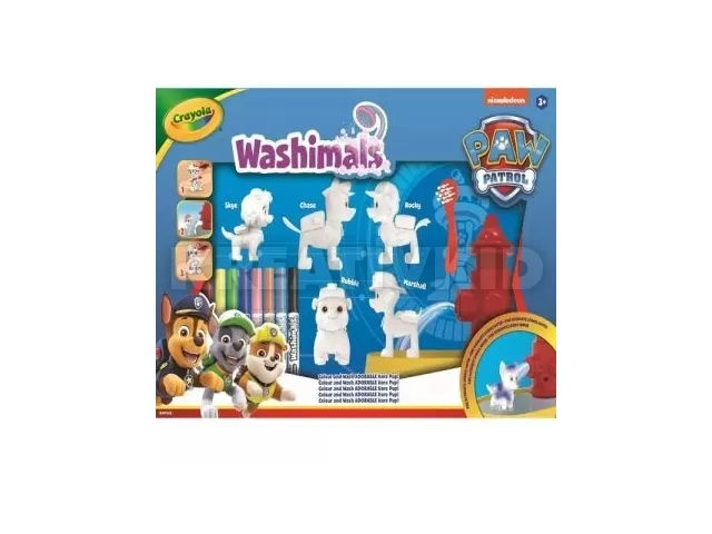 Crayola Washimals Mancs Őrjárat figuraszett, 5 db. Díszítő matricák. Ultra-Clean Washable filctollal. Csomagolás mérete: 36 x 12 x 25 cm.