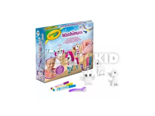 A Crayola Washimals Különleges állatkák játékszettben 3 varázslatos állatfigura, 3 darab különbözőszínű filctoll és egy kefe található. Ha elkészült az alkotás, elég csak lemosni az imádnivaló állatkákat, és kezdődhet is elölről a móka!