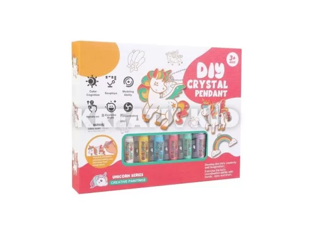 Ezzel az édes unikornisos szettel a gyerekek is szuper kiegészítőt készíthetnek maguknak. A csomag 6 db formát, 6 db 5 ml-es festéket, 6 db láncot, 5-féle színű, gyémánt alakú gyöngyökből álló gyöngycsomagot, 5-féle sima gyöngycsomagot, 1 medálkészítő eszközt és átlátszó damilt tartalmaz.