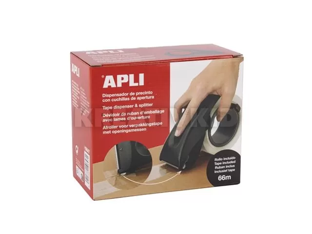 Csomagolószalag adagoló, beépített pengével, csomagolószalaggal, APLI, fekete