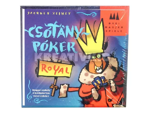A népszerű Csótánypóker királyi kiadása. Még rondább irtózatos állatok képével. Ez egy igazán blöffölős kártyajáték. Ronda bogaras kártyákkal. Ha nem bírod a rovarokat, bogarakat bajod lesz vele. Blöffölj add át a lapjaidat, és próbáld elérni azt , hogy valakinél négy egyforma legyen. Ha ez sikerül akkor ő kiesett. Légy ravasz és taktikus, hogy te maradjál talpon.