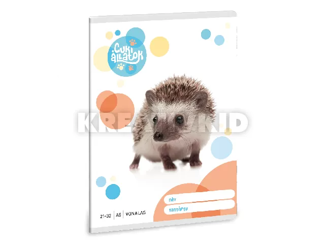 A/5-ös méretű vonalas füzet, 4. osztálytól használható szabványos vonalazású. 32 lapos, belseje 75 gr-os papírból. Borítója 250 gr-os műnyomó kartonra lekerekített sarkokkal, fényes fóliázással, 4 szín nyomással készült.