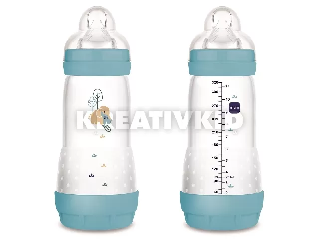 A természet ihlette színekkel és mintákkal ellátott 320 ml-es MAM Anti-Colic Matt Forest az ideális cumisüveg kisbabáknak: a babák saját tempójukban, teljesen ellazulva ihatnak.