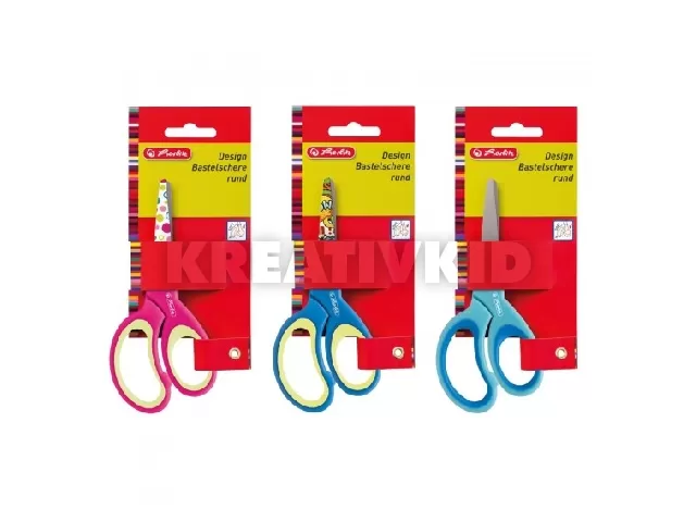 Iskolai olló Design tompa, 13 cm, jobbkezes, műanyag/acél alapanyagból, ergonomikus, gumis fogórésszel, nyomásmintával díszített vágórésszel