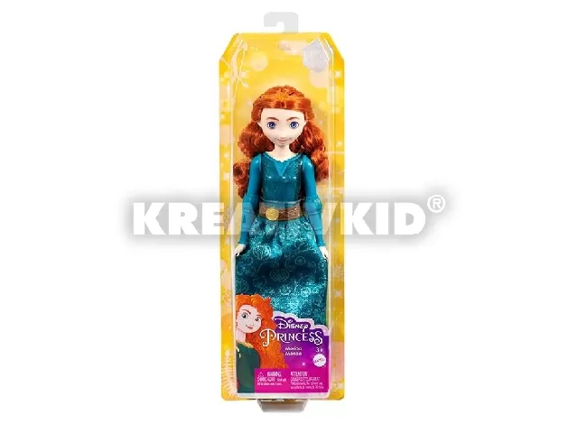 A Merida, a bátor című rajzfilm ihlette Merida baba fénylő ruhája, stílusos kiegészítői (cipellők és tiara), valamint fésülhető, hosszú haja elbűvölő megjelenést kölcsönöznek neki. A baba végtagjai mozgathatók, így a gyerekek különböző pozíciókba állíthatják be a bátor és kalandvágyó karaktert.