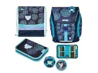 Hátizsák formájú iskolatáska. Könnyű súlyú, formatartó szerkezetű, vízlepergető anyagból. Gerinckímélő, vastagon párnázott, merevített, ergonómikus hátkiképzéssel. Puha, méretre állítható vállpántokkal és plusz állítható pántokkal, amelyekekkel szabályozható, hogy mennyire álljon feszesen a gyerek hátához simulva a táska. Alja tartós kemény műanyag. Nagy felületű fényvisszaverő elemekkel elől, oldalt és a vállpántokon. Felülről könnyen pakolható, teteje FIDLOCK mágneszárral záródik. Belsejében egy textil elválasztó elemmel, két nagy rekesszel. A táska tetején belül átlátszó műanyag órarendtartóval és órarenddel. Oldalán két zsebbel a kulacs részére, elején egy cipzáros zseb az uzsonnás doboz részére. Tetején műanyag fogantyúval. Mérete: 330x410x250 mm. Súlya: 1.1 kg. Táska űrtartalma: 18 l. Terhelhetőség: 12 kg. 3 év garancia