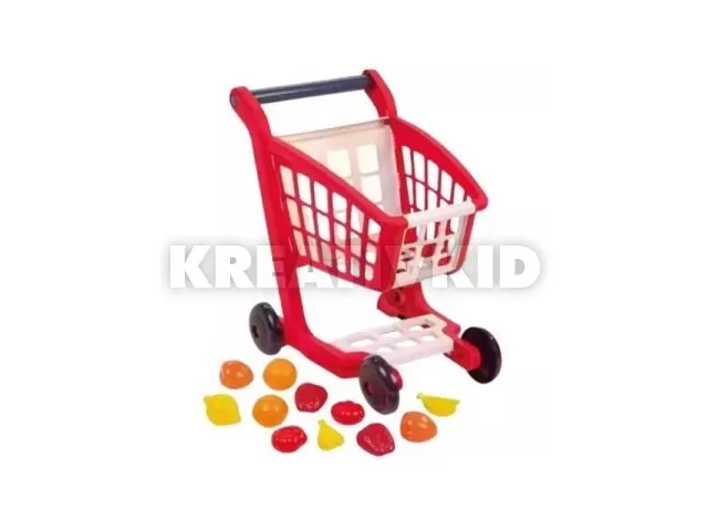 Szuper, akár járássegítőként is használható, jó minőségű műanyagból készült színes bevásárló kocsi élethű játék gyümölcsökkel. Konyhaszettekhez, bevásárlós játékokhoz elengedhetetlen kellék. A kocsiban 12 különféle gyümölcs található, így a gyerekek játszva ismerkedhetnek meg a gyümölcsökkel és az egészséges táplálkozás alapjaival.