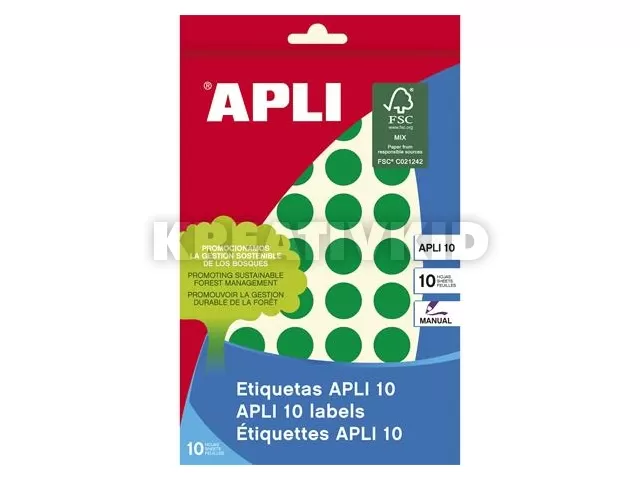 Etikett, 16 mm kör, kézzel írható, színes, APLI, zöld, 432 etikett/csomag