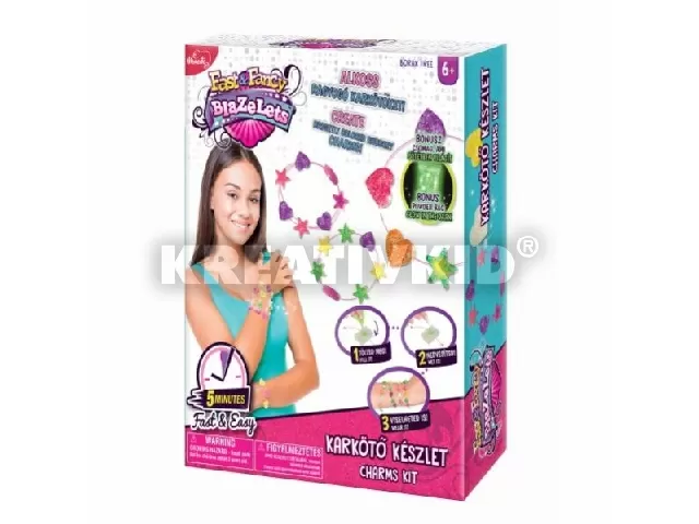 A Fast and Fancy kreatív szettjeivel varázslatos színekben pompázó karkötőket készíthetsz! Különböző színekben és formákban alkothatod meg a legdivatosabb, rugalmas ékszereidet! Minden szett tartalmazza a színes porokat, amikből a formázóba adagolva víz segítségével tudod a karkötőket elkészíteni.