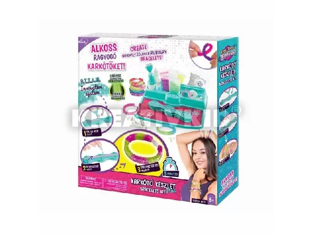 A Fast and Fancy kreatív szettjeivel varázslatos színekben pompázó karkötőket készíthetsz! Különböző színekben és formákban alkothatod meg a legdivatosabb, rugalmas ékszereidet! Minden szett tartalmazza a színes porokat, amikből a formázóba adagolva víz segítségével tudod a karkötőket elkészíteni.
