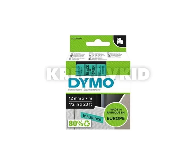 Feliratozógép szalag, 12 mm x 7 m, DYMO "D1", zöld-fekete