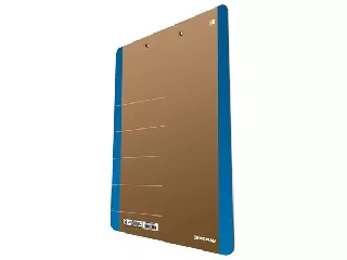 A4-es méretű felírótábla PVC borítással, erős leszorító csipesszel, kék és fekete színben.