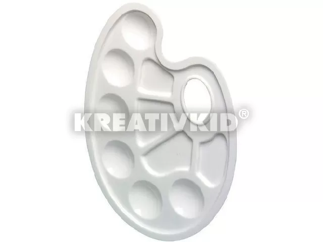 Festékkeverő paletta, erős műanyag, 23,5x17 cm, fehér színben. 6 db kör alakú festéktartóval, 4 db négyszög alakú keverőmélyedéssel, fogantyúval