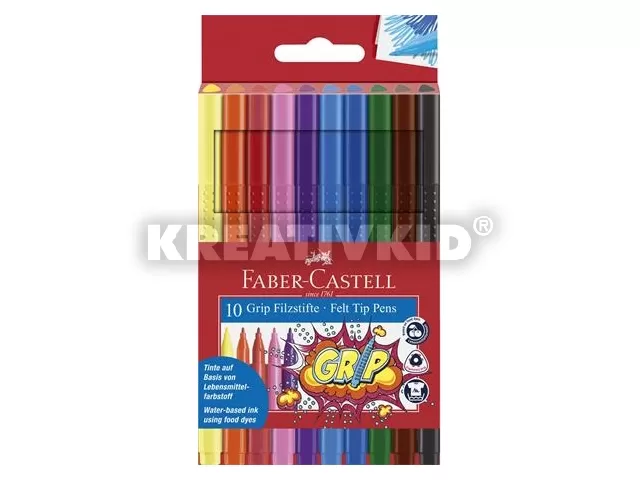 Filctoll készlet, háromszögletű, FABER-CASTELL "Grip", 10 különböző szín