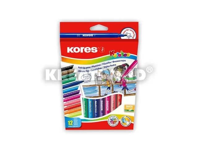 Filctoll készlet, kimosható, KORES "Korellos", 12 különböző szín