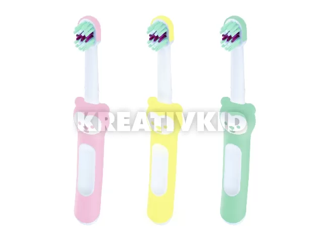 Rövid, kompakt nyél, hogy a felnõttek fogmosó mozdulatait utánozni tudják.
