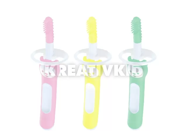 A biztonsági pajzs biztonságos távolságban tartja a kefét a baba szájüregének hátsó részétõl