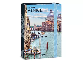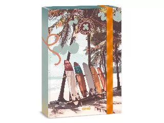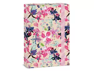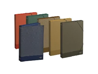 A/5 méretű füzetbox. Kemény, tartós kartonból, 4 cm-es gerinccel, fényes fóliával, 7 mm széles gumipánttal. Belseje egy színnel nyomott. Füzetek, irat...