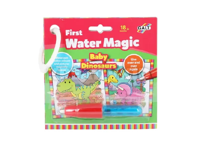 Vastag lapokból álló kifestő, mely 4 újrafesthető, dínó témájú képet tartalmaz egy vízzel tölthető tollal. Töltsd meg a tollat vízzel és kezd el színezni a lapot, ennek hatására előbújnak az eddig rejtett képek és színek. Izgalmas szórakozást nyújt a gyermekek számára!