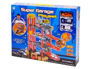 60 cm magas és 103 cm széles, könnyen összeállítható óriás garázs pályaszett szervizzel és autómosóval. Az úthálózat hossza 150 cm. Az elemek tökélete...