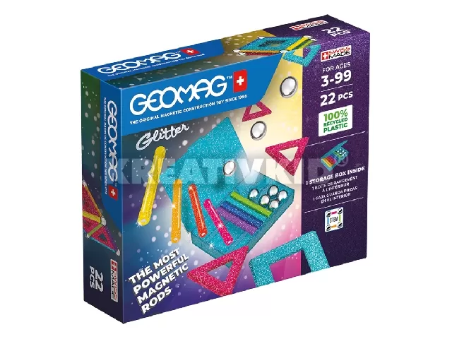 Itt a csillogó Geomag Glitter 22 db-os mágneses építőjáték szett! Káprázatos alakzatokat hozhatsz létre a legújabb csillogós Geomag Glitter 22 db szettből. A készletben található mágneses rudak nemcsak színesek, de csillognak is, így Geomag műved igazán különleges lesz! A csillogás leginkább a lányok világa, de egy fiús építményt is remekül fel tud dobni néhány csillogó alkotóelem. Építési ötletekért használd a mellékelt útmutatót, de még jobb, ha saját fantáziádat hívod segítségül Geomag-alkotásod létrehozatalához! Mit tartalmaz a Geomag Glitter 22 db csillogós mágneses építőjáték szett? 8 db különböző színű csillogó mágneses rúd, 8 db fémgolyó, 4 db háromszögletű műanyag panel, 2 db négyszögletű műanyag panel. Mi a Geomag? A Geomag egy svájci minőségű mágneses építőjáték-család, mely számos termékvariációban érhető el.