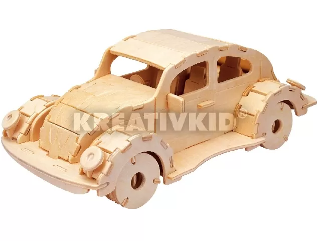 Festhető, fa elemekből összerakható, 3 dimenziós fa makett puzzle az Eureka! Gepetto's Workshop kollekciójából. A mókás, és nagyon mutatós bogárhátú kisautó belsejében még az ülések is megtalálhatóak.