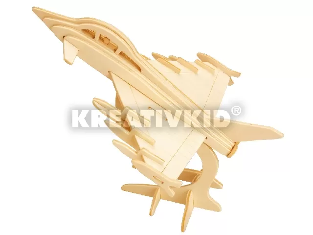 Festhető, fa elemekből összerakható, 3 dimenziós fa makett puzzle az Eureka! Gepetto's Workshop kollekciójából. A Harci repülőgép makett garantáltan tetszeni fog a fiúknak. A felszálló harci repülőgép makett a tartóján megáll.