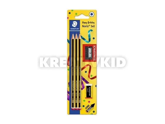 Grafitceruza, HB, hatszögletű, hegyezővel és radírral, STAEDTLER "Noris