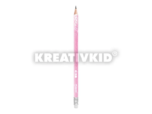 Grafitceruza radírral, HB, háromszögletű, glitter rózsaszín