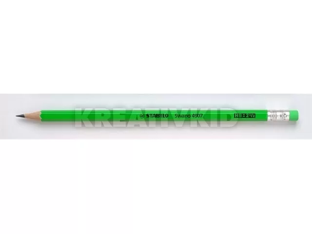 Grafitceruza radírral, HB, hatszögletű, STABILO "Swano Neon", zöld