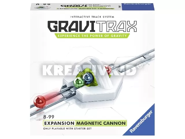 Ha az ágyút összekapcsolod az induló készlettel, a játék sebességét mágneses erővel növelheted – a játékgolyókat nagy sebességgel, hatalmas magasságokba repítheted a mágneses ágyú segítségével. Az ágyút többféleképpen lehet elrendezni a már meglévő Gravitrax alappályán.